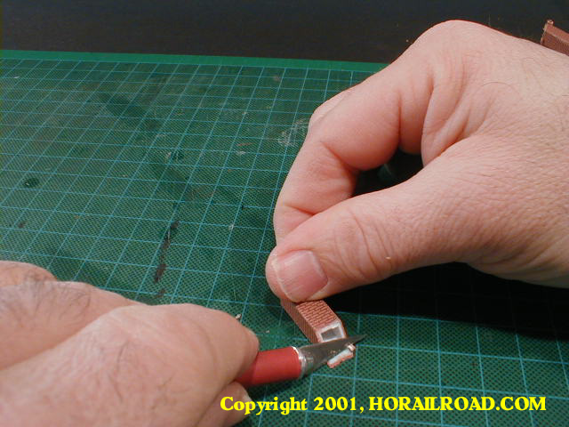 mat. After a little shaving and a repeat of the test fit on the roof, the chimney stood up vertical. If you're more comfortable with a flat file that will work too, but it does make that pesky dust.